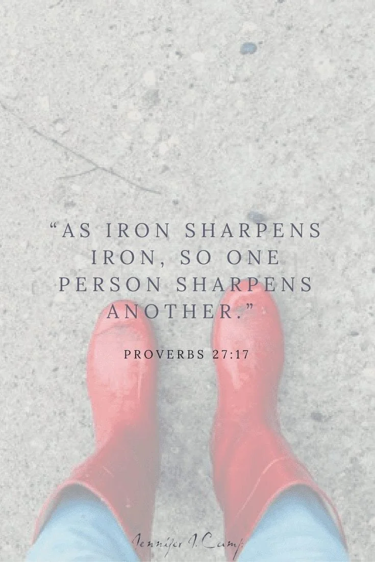 "As iron sharpens iron, so one person sharpens another" (Proverbs 27:17).